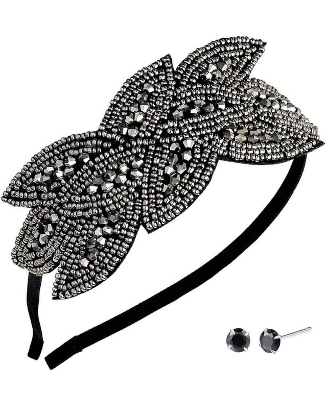 Diadema negra con abalorios. Años 20. Gatsby Está sin estrenar