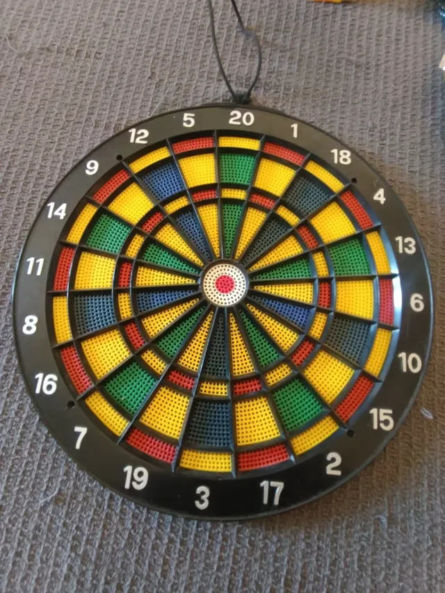 Diana de dardos con números. - Diseño circular. - Colores variados en los sectores.