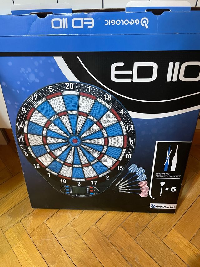 Detalles del productoDiana de dardos Geologic ED110, en perfecto estado. Incluye 6 dardos con puntas de plástico. Es ideal para jugar en casa y pasar un buen rato.
