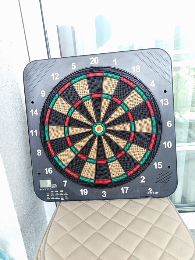 Diana electrónica funciona con tres pilas medianas. No incluye dardos.