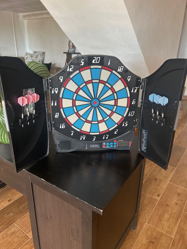 Diana electrónica Canaveral con puertas abatibles. - Incluye dardos. - Pantalla digital.