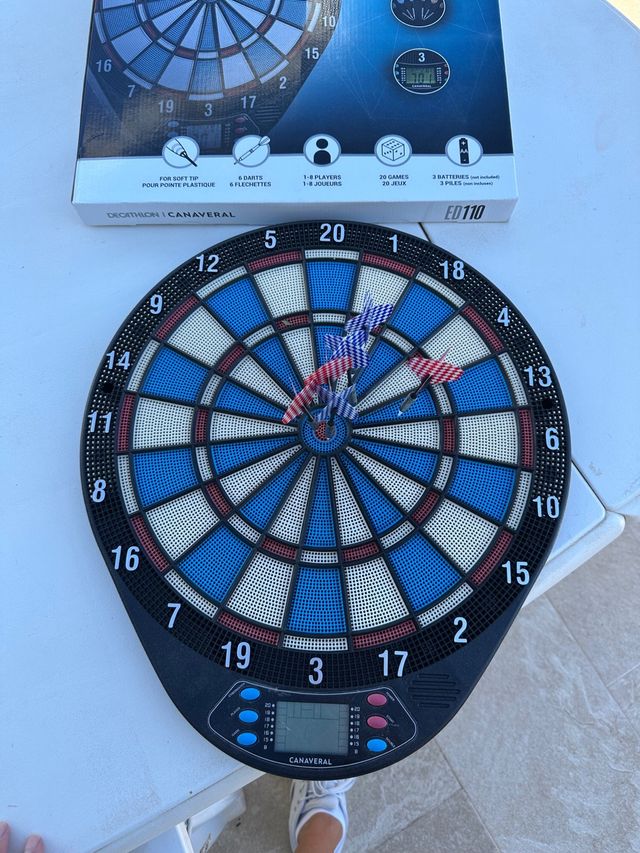Detalles del productoDiana electrónica para dardos de la marca Decathlon.