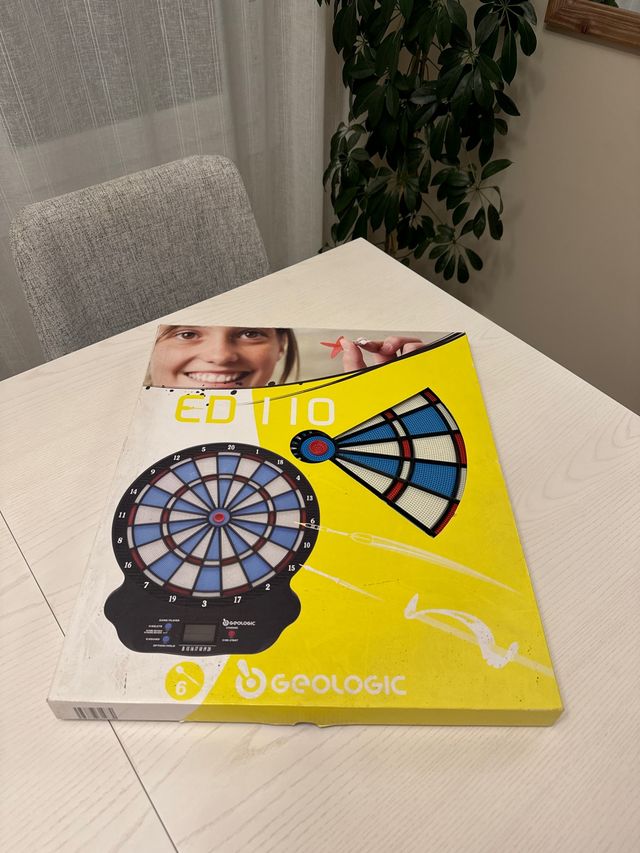 Diana electrónica Geologic ED 110 con pantalla digital. - Diseño moderno en color amarillo. - Incluye diana NO INCLUYE DARDOS nueva nunca se usó