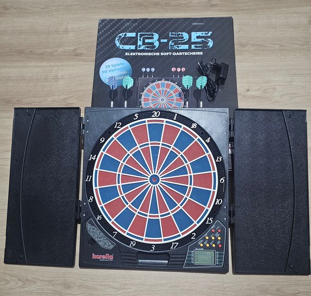 Detalles del productoDiana electrónica con puertas de protección y soporte para dardos sin prácticamente uso. Estado impecable. Se vende por no usar. Caja artículo original incluida. No negociables.