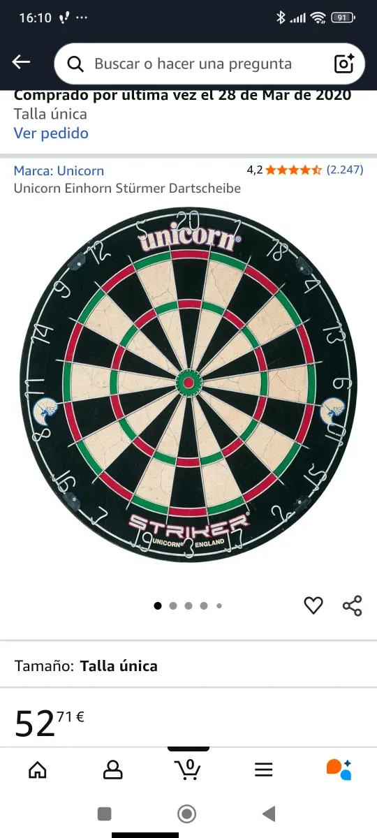 Detalles del productoDiana de dardos Unicorn Striker England en buen estado. Ideal para practicar. Precio negociable