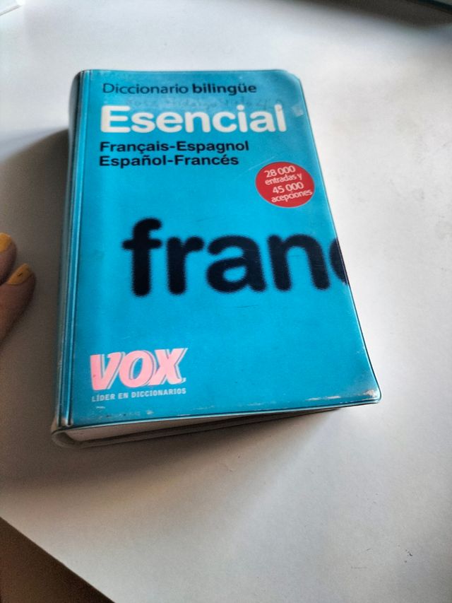 Diccionario francés-español. Se despega un poco la tapa del lomo como se puede ver el las fotos pero es perfecto para usar en el cole