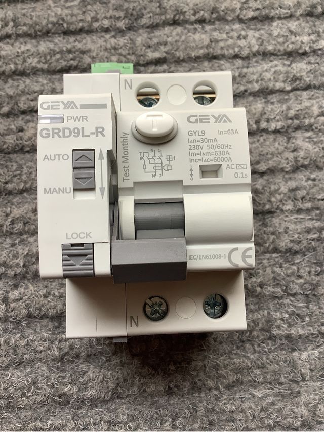 Disyuntor diferencial rearmable de la marca GEYA, modelo GRD9L-R.