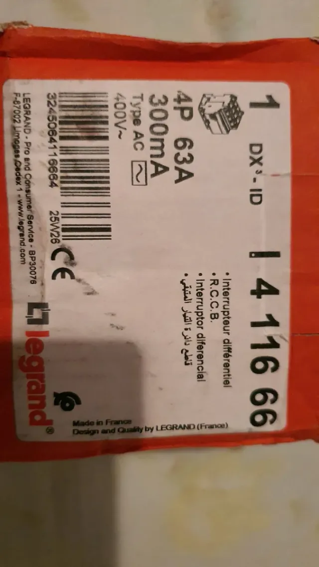 Interruptor diferencial Legrand 4P 63A 300mA. - Modelo: DX³-ID - Tipo AC - Tensión nominal: 400V~ - Fabricado en Francia
