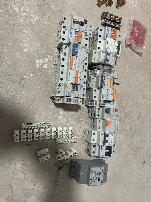 Detalles del productoLote de diferenciales y accesorios eléctricos variados.