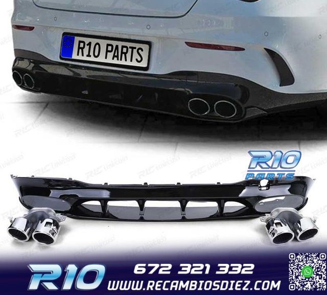 DIFUSOR MERCEDES CLA C118 19- LOOK AMG NEGRO BRILLO + COLAS