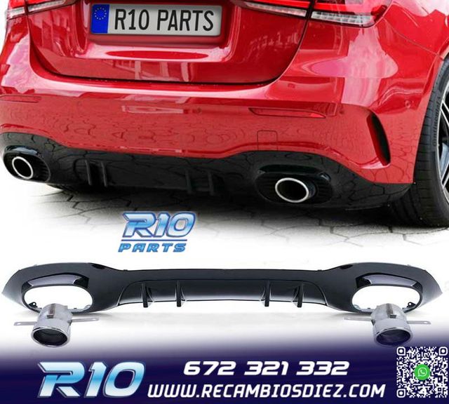 Detalles del productoMóvel: 672 321 332 - Referencia: CRC010650. DIFUSOR MERCEDES CLASE A W177 18- A35 LOOK AMG NEGRO BRILLO + COLAS ESCAPE Compatible con: Mercedes Clase A W177 (2018-) Solo para modelos con paragolpes AMG Line Especificaciones: Modelo: Look A35 AMG Material: Plástico ABS Salida de escape: doble a ambos lados Incluye: Difusor / Colas de Escape Montaje. Fácil instalación, con los mismos accesorios originales. ABS. Fabricado en plástico de alta calidad con gran resistencia y durabilidad. Estilo. Dale a tu vehículo un aspecto más moderno con este difusor deportivo. Estos no son produc