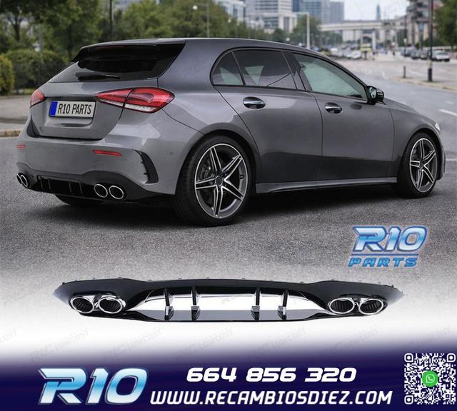 Sin valoracionesDetalles del productoMóvil: 664 856 320 - Referencia: CRC010845. DIFUSOR MERCEDES CLASE A W177 18- LOOK AMG A45 NEGRO BRILLO + COLAS ESCAPE Compatible con: Mercedes Clase A W177 (2018-) Solo para modelos con paragolpes AMG Line Especificaciones: Modelo: Look AMG A45 Material: Plástico ABS Salida de escape: Doble a ambos lados Incluye: Difusor + Colas de Escape Montaje. Fácil instalación, con los mismos accesorios originales. ABS. Fabricado en plástico de alta calidad con gran resistencia y durabilidad. Estilo. Dale a tu vehículo un aspecto más moderno con estos difusor deportivo. Estos no son producto