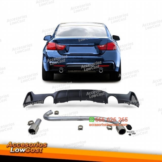 Detalles del productoREF: AL900498 Características del artículo del difusor trasero mate + tubo de escape con apariencia 440 para BMW F32 F33 F36 425 428 430 Las principales características del producto del difusor trasero mate + tubo de escape 440 look adecuado para BMW F32 F33 F36 425 428 430 son: Descubra el kit de conversión compuesto por un difusor trasero en estilo Performance negro mate y un kit de conversión de tubo de escape en estilo 440 con salidas de escape cromadas en ambos lados. Este set le da a tu BMW Serie 4 Tipo F32 Coupé / F33 Cabrio / F36 Gran Coupé (años de construcción 2013-2021) con los modelos 425d, 430d, 428i y 430i