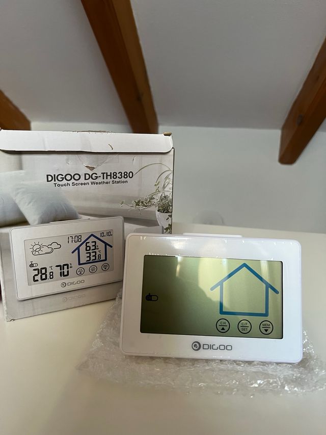 Detalles del productoReloj multifunción para estación meteorológica y pantalla táctil fácil: pantalla retroiluminada de pronóstico meteorológico, visualización de temperatura y humedad, pantalla de hora y calendario, más suave. La pantalla táctil ofrece un tacto suave.