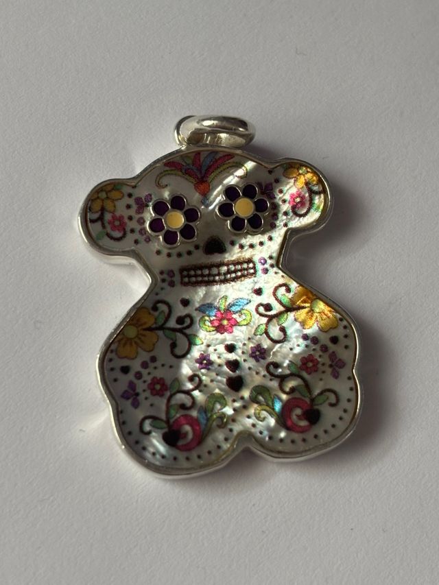 Este dije de Tous tiene un diseño inspirado en el Día de Muertos, con forma de oso y adornado con flores y detalles coloridos.