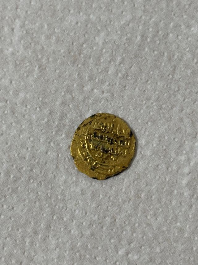 Detalles del productoMoneda Dinar Fatimí de 1/4, con un forrado de oro.