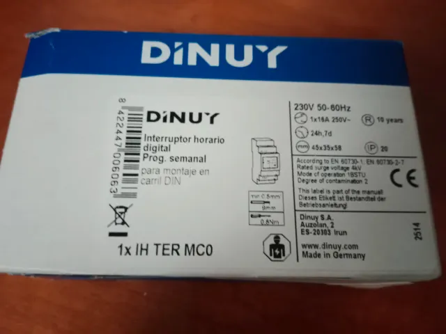 Detalles del productoTemporizador horario digital de la marca Dinuy.