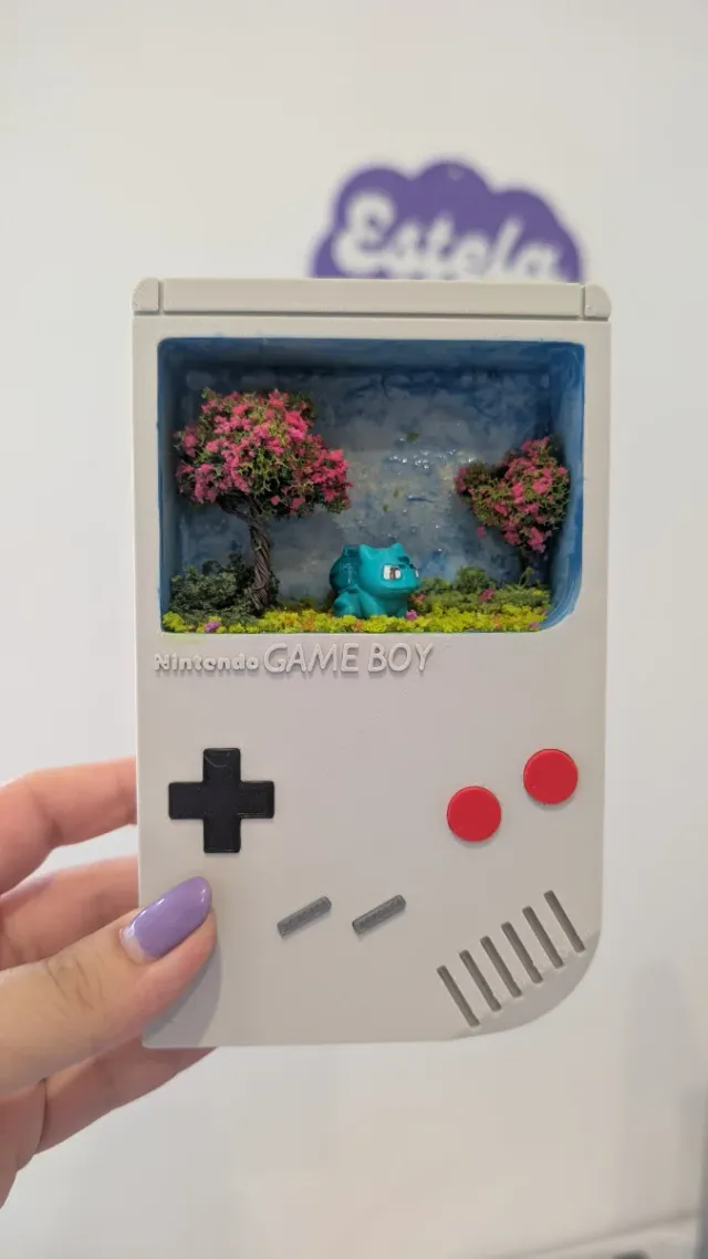 Creamos dioramas 3D únicos, inspirados en la clásica consola Gameboy, con escenas y detalles del juego que tú elijas.