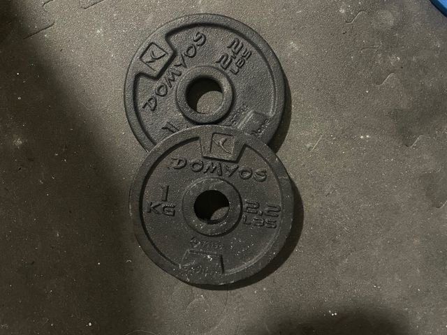 Disco de hierro Domyos de 1 kg. 28mm - Material: Hierro fundido. - Peso: 1 kg (2.2 lbs). - Marca: Domyos.