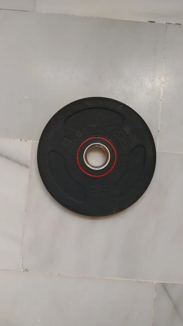 Disco de pesas de 2.5 kg. Es un disco solo. - Diámetro Interior: 2,5kg - Marca: Decathlon