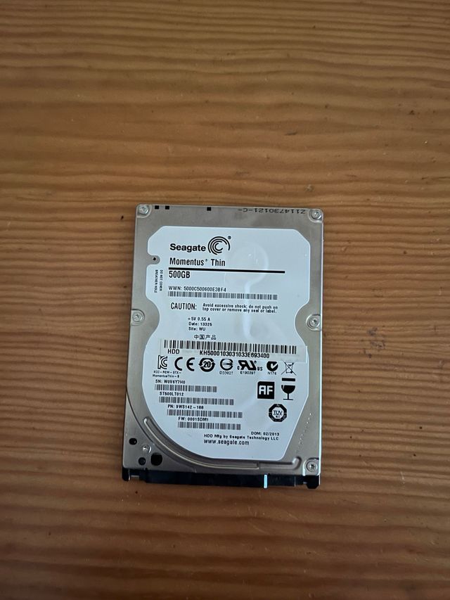 Disco duro HDD de 500GB, marca Seagate. Original de un portatil Packard Bell.