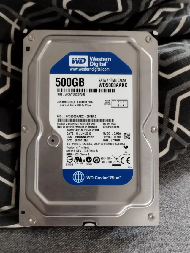 Disco duro interno de 500 GB de capacidad. - Modelo: WD5000AAKX - Interfaz: SATA - Caché: 16MB
