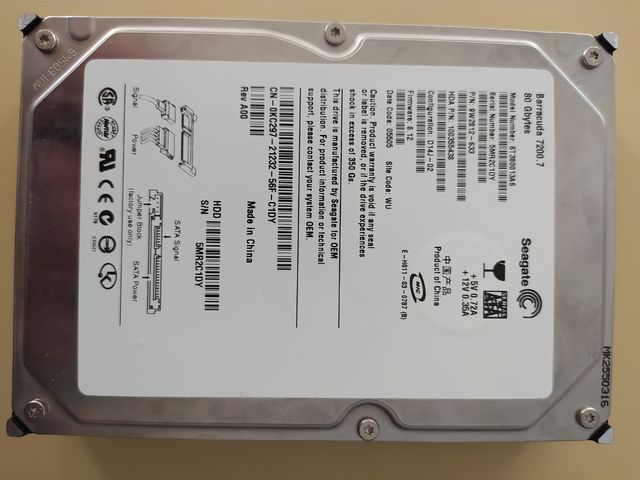 Disco de 80GB, marca Seagate y conexión SATA. Tengo otros discos anunciados en el perfil.
