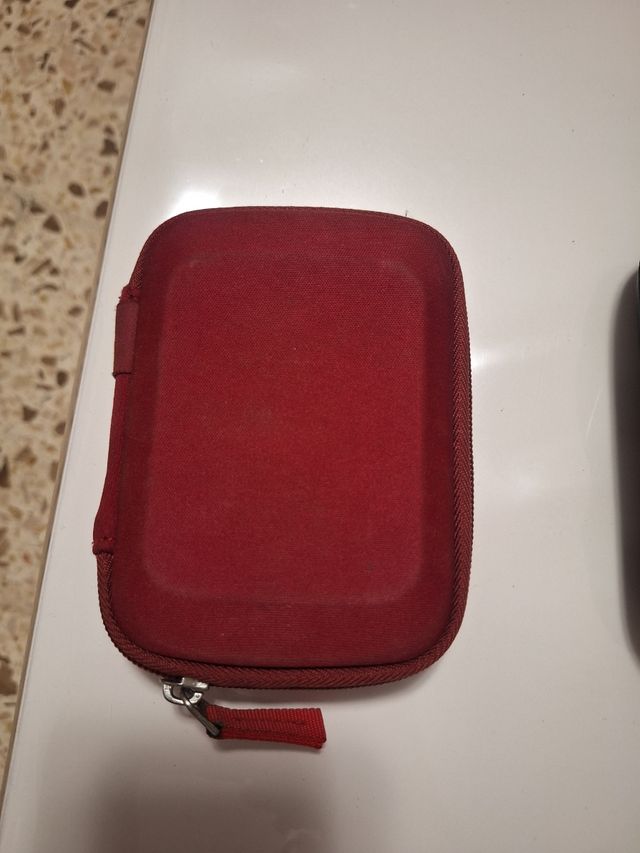 Funda roja para disco duro externo de 1TB. Está en perfecto estado. - Incluye una funda protectora roja. - Capacidad de almacenamiento: 1TB.