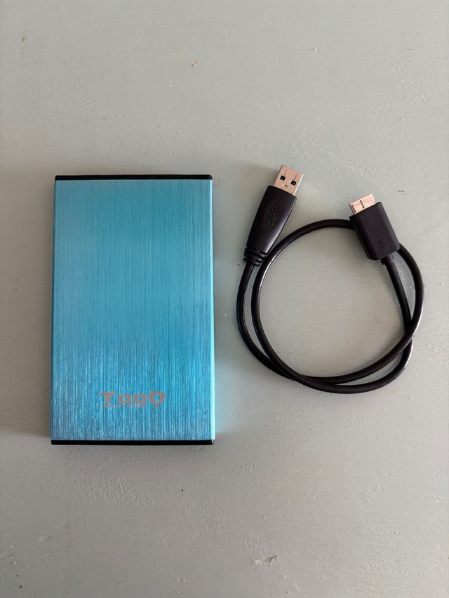 Detalles del productoDisco duro externo de 500GB con acabado metálico azul.