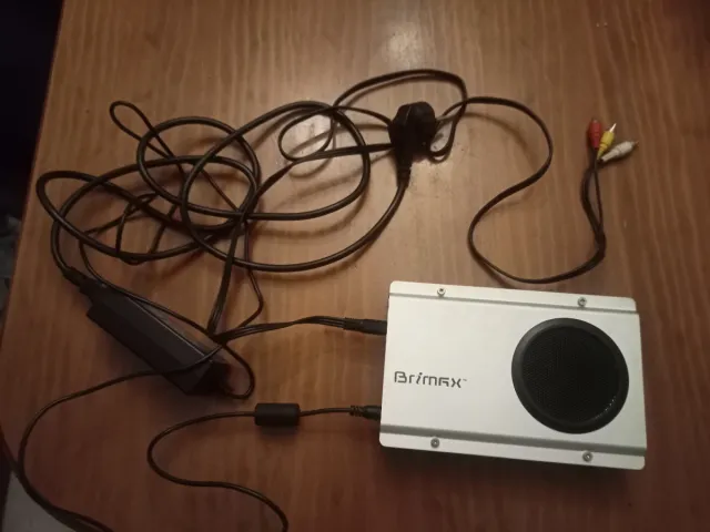 Detalles del productoDisco duro externo de la marca Brimax. Incluye cables de conexión y adaptador de corriente.