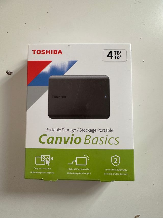 Detalles del productoDisco duro externo portátil Toshiba Canvio Basics de 4TB. Ideal para almacenar tus archivos y copias de seguridad. Nuevo. Original. No negociable
