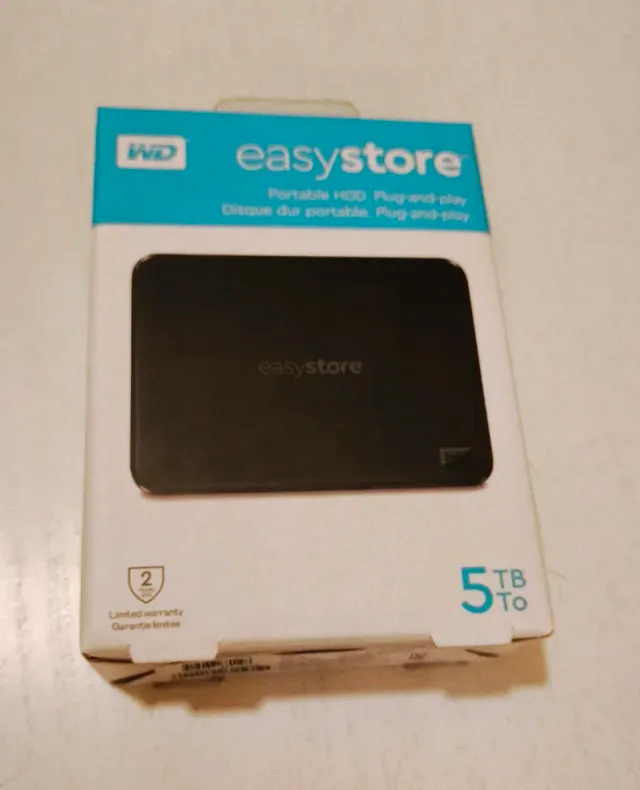 Detalles del productoDisco duro externo portátil Easystore de 5 TB.
