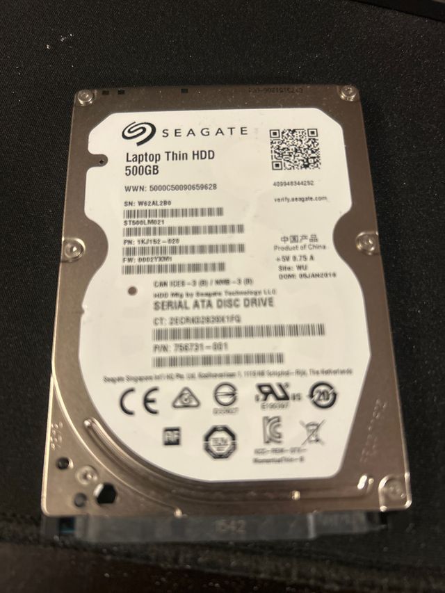 Detalles del productoDisco duro interno Seagate de 500GB para portátil.