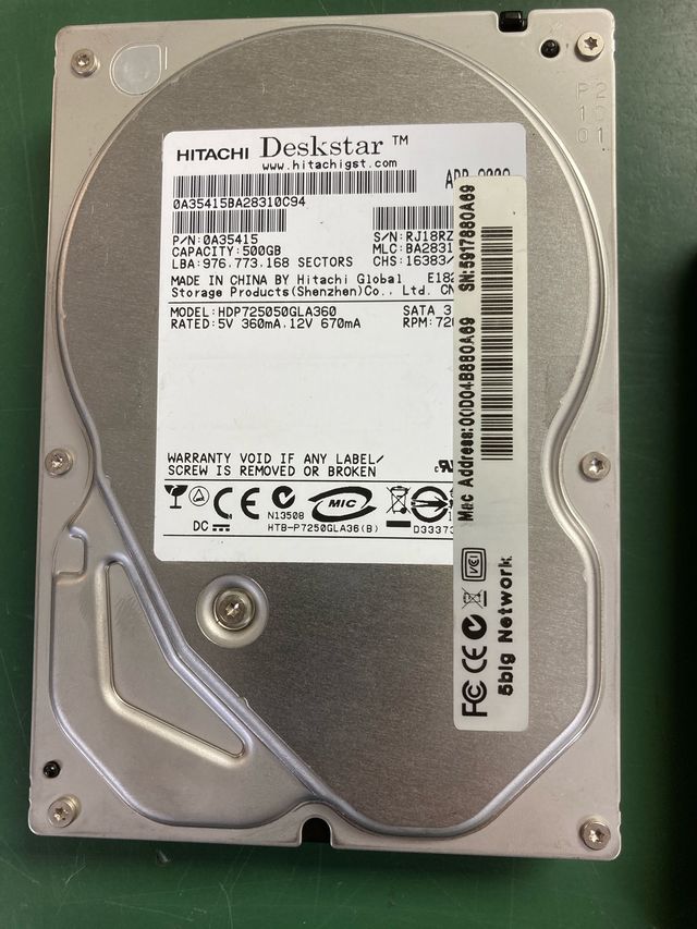 Detalles del productoDisco duro interno Hitachi Deskstar de 500GB.