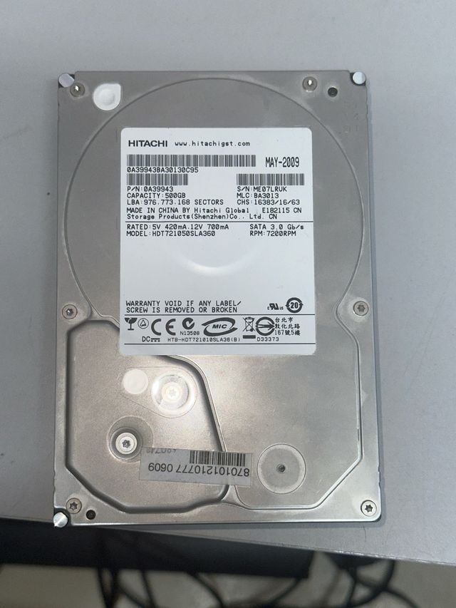 Disco Duro Hitachi 500GB ¡Disco duro Hitachi en buen estado! Perfecto para ampliar almacenamiento o respaldos.