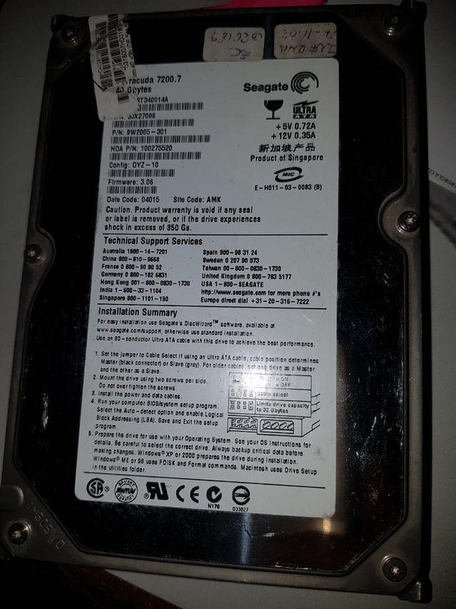 Detalles del productodisco duro IDE con Windows 95 o 98.