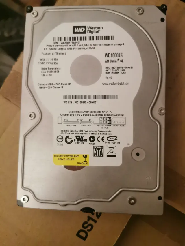 Disco duro interno Western Digital Caviar SE de 160 GB. - Modelo: WD1600JS-50NCB1 - Capacidad: 160.0 GB - Interfaz: SATA - Año de fabricación: 2006