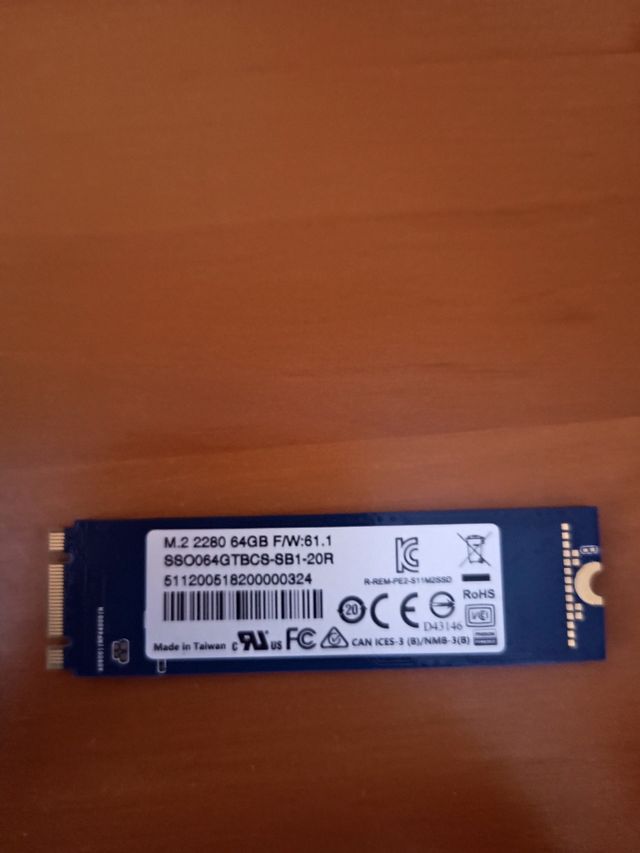 Disco duro M.2 SATA de 64GB. - Modelo: SSO064GTBCS-SB1-20R - Fabricado en Taiwán. Solo entrega en mano
