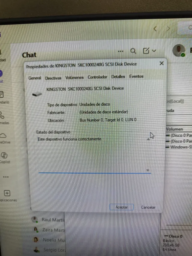 Disco duro interno NVMe de 240GB. - Modelo SKC1000240G. - Interfaz SCSI. - Funciona correctamente.