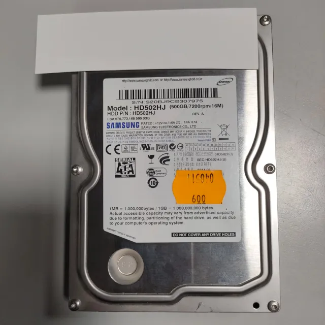 Disco duro interno Samsung de 500GB. - Modelo: HD502HJ - Capacidad: 500GB - Velocidad: 7200 RPM - Caché: 16MB - Interfaz: SATA.