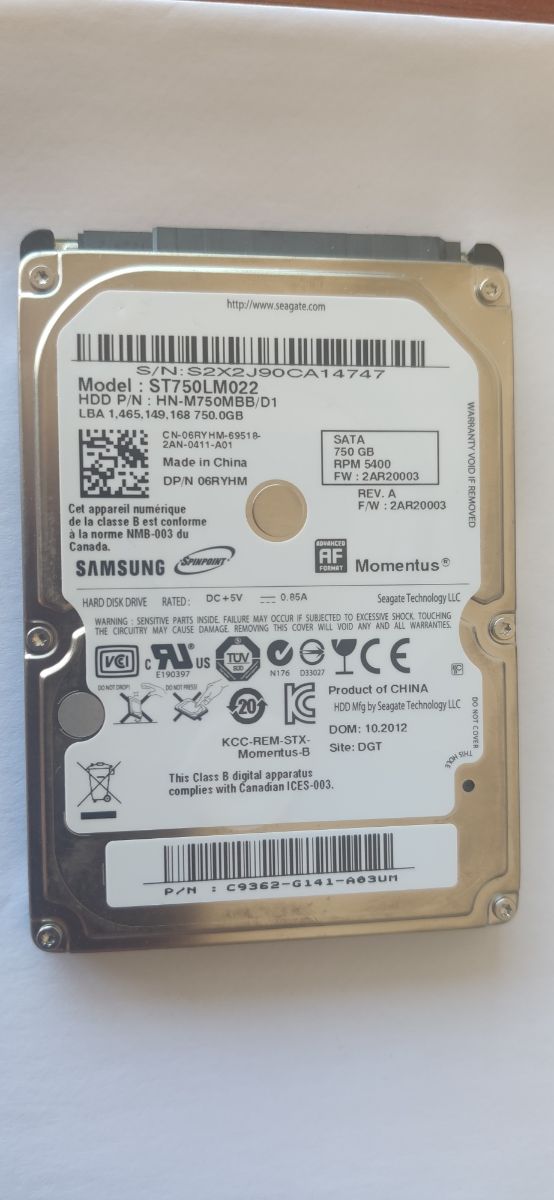 Vendo disco duro Seagate de 750 GB. Está en buenas condiciones. - Modelo: ST750LM022 - Capacidad: 750 GB - Interfaz: SATA
