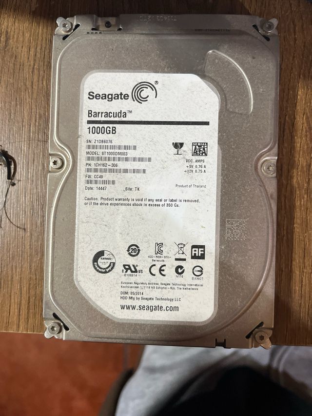 Detalles del productoDisco duro interno Seagate Barracuda de 1TB.