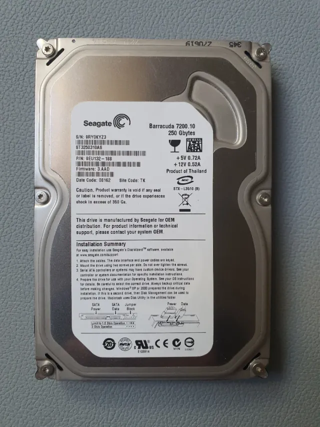 Disco duro interno de 3.5 pulgadas con capacidad de 250 GB. - Modelo: Barracuda 7200.10 - Interfaz: SATA - Fabricado por Seagate para OEM.