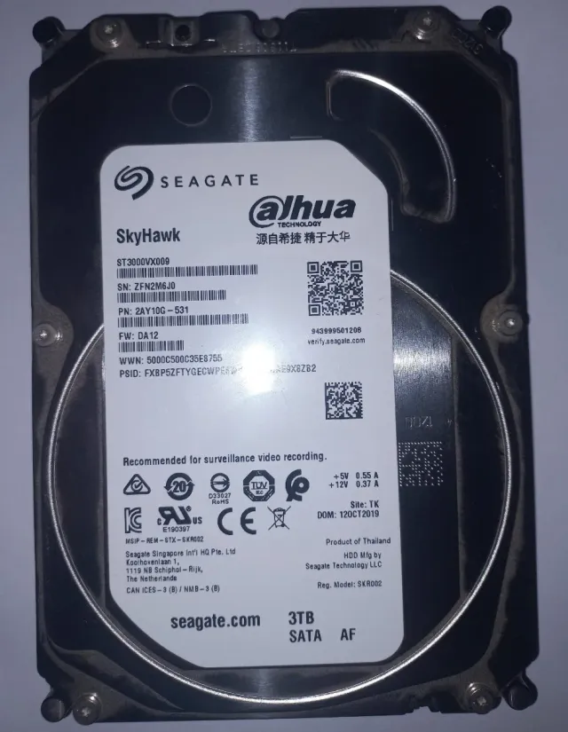 Detalles del productoDisco duro Seagate SkyHawk de 3TB, modelo ST3000VX009, diseñado para grabación de video en vigilancia.