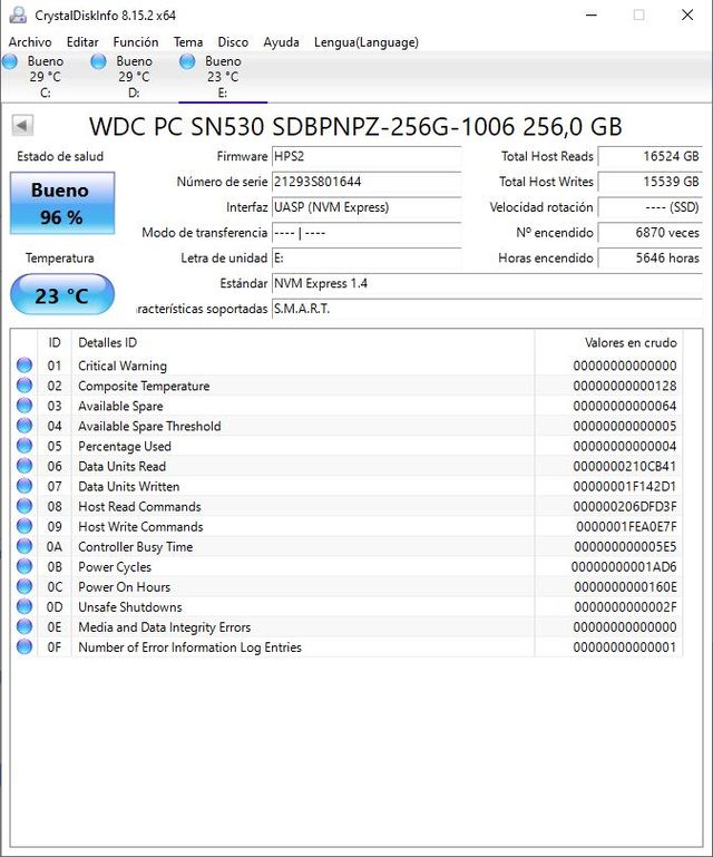 Disco duro SSD 256GB WD M.2 2280 PCIe NVMe