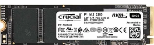 Detalles del productoDisco de estado sólido Crucial P1 de 500GB en formato M.2 2280.