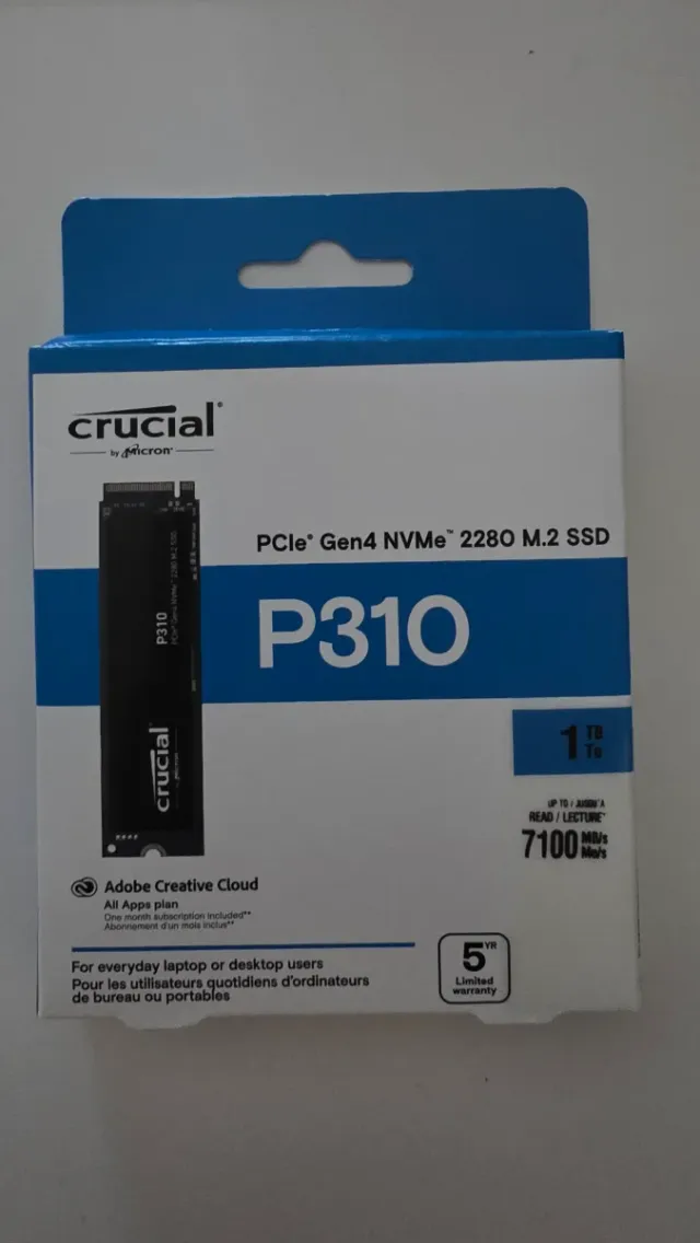 Disco de estado sólido Crucial P310 de 1TB. - Interfaz PCIe Gen4 NVMe 2280 M.2.