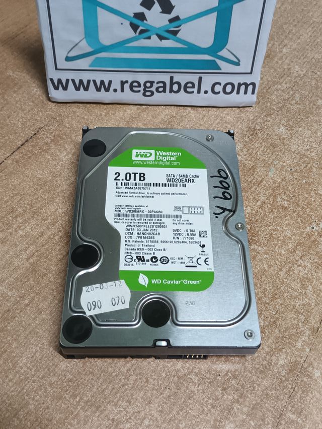 Detalles del productoWestren Digital 2TB WD20EARX SATA II 64MB 5400RPM 3,5 Pulgadas