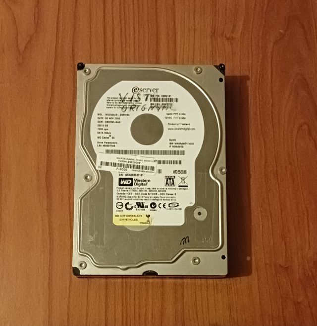 Disco duro interno Western Digital de 3,5 pulgadas. Comprobado en perfecto funcionamiento - Capacidad: 250gb - Interfaz: SATA - Marca: Western Digital