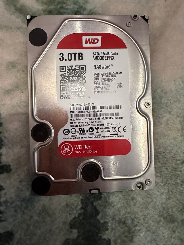 Disco duro Western Digital Red de 3TB. - Modelo WD30EFRX. - Caché de 64MB. - Interfaz SATA. - Diseñado para NAS. NO SE ENVIA. Entrega solo en mano en Bizkaia